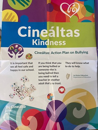 Today we held an assembly for the whole school on the importance of being Kind and being a good friend to each other. We sang a song together and celebrated our new Bí Cineálta flag, which we hope to raise and fly over our school this Christmas and for many years to come.
