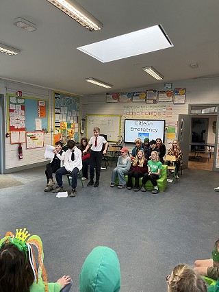 Bhí craic agus sprai sa rang. What a lovely morning watching the 5th and 6th class perform their play, all about the shenanigans on board a Ryanair flight!✈️ Bhí sé go hiontach ar fad. Meas mór do gach duine a bhí rannphairteach. Maith-thú Múinteoir Elaine.